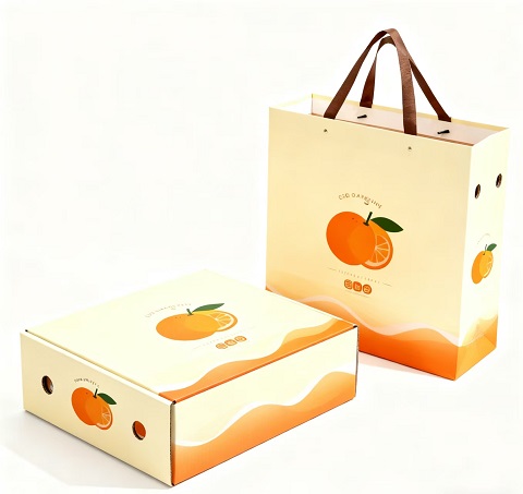 新鮮飽滿的橙子,需要精致包裝承載其天然鮮醇,而翻蓋盒搭配專屬手提袋的組合,正是高端水果包裝的優選方案。盒身選用高克重特種觸感紙,表...